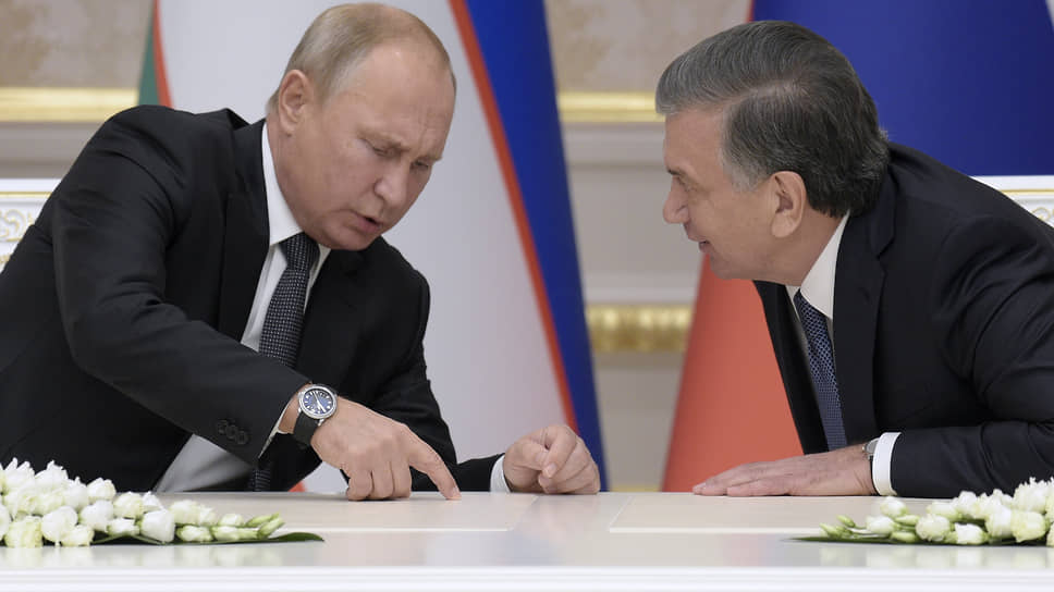 Президенты России и Узбекистана Владимир Путин и Шавкат Мирзиёев в 2018 году