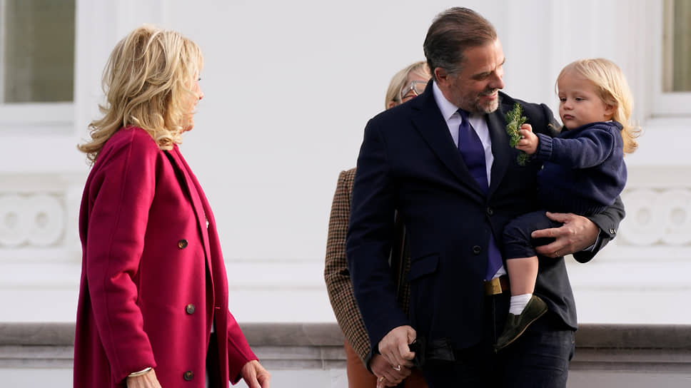 Хантер Байден (в центре) с сыном Бо и первой леди Джилл Байден