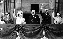 | Британская королевская семья (принцесса Елизавета, королева Елизавета, король Георг VI и принцесса Маргарет) могла ликовать 8 мая 1945 года только благодаря Черчиллю |