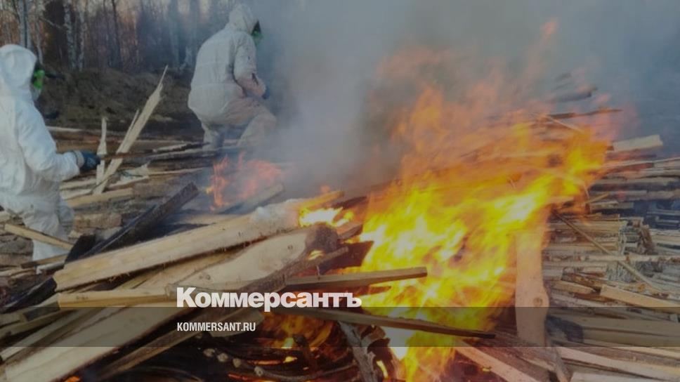 Биологические отходы уничтожены путем сжигания на месте обнаружения. Зольный остаток подвергнут засыпанию хлорной известью.