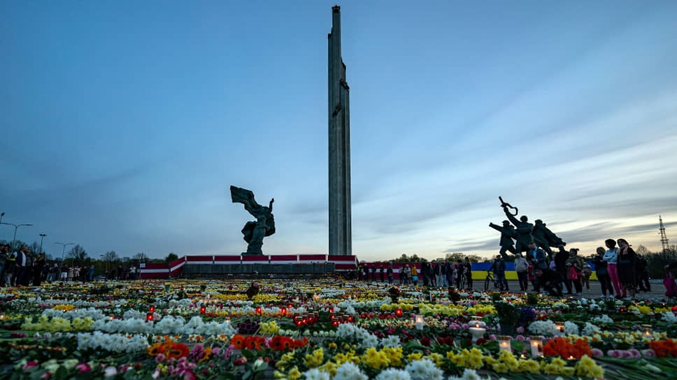 Цветы у мемориального комплекса Освободителям Риги