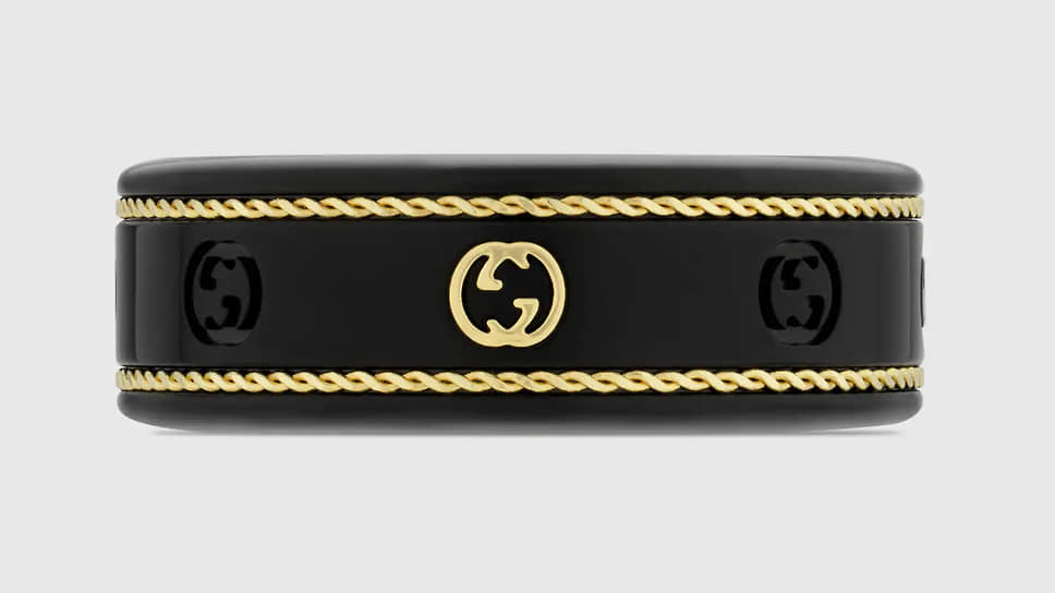 За основу Gucci x Oura Ring взято стандартное кольцо Oura 3, которое выполнено из титана с черным покрытием. Внешнюю поверхность кольца украшает логотип модного бренда и плетеный узор из 18-каратного желтого золота. Зарядная док-станция также выполнена в черном цвете и декорирована монограммами Гуччо Гуччи.