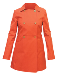 Жестковатые, точной формы тренчи до колена и укороченные бушлаты с завышенной линией талии Celine сшиты из хлопка с пропиткой кораллового цвета. Короткие плащики-тренчи Etro — из плотного ярко-оранжевого хлопка, в качестве отделки — узкие канты из пестрого платочного шелка.