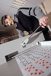 Намного дешевле заказывать карты в обычных типографиях — напечатают за неделю, а цена колоды составит около $13. А если заказать 50 колод, стоить тираж будет уже $310. "Если у заказчика есть уже нарисованные изображения, то мы их просто загоняем под карточный шаблон в компьютер, распечатываем и обрезаем. Если готового рисунка нет, делаем эскизы сами. Стараемся, чтобы было похоже на настоящие карты",— рассказывает о технологии производства дизайнер фирмы ТПС Олег Попов. "Однажды ко мне пришел клиент. Он захотел сделать детские карты — чуть меньше обычных по размеру, а вместо мастей чтобы были животные: лисички, бегемотики, слоны и жирафы",— вспоминает господин Попов. Но оригинальных проектов мало, в основном просят сделать карты с логотипом фирмы на рубашке.
