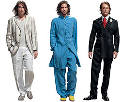 | Baldessarini полагает, что мужчины достойны роскоши, поэтому одевает их в самое дорогое — тончайшую шерсть, египетский хлопок или кожу питона (коллекция "Французский ковбой в Марракеше", весна--лето 2005 года) |