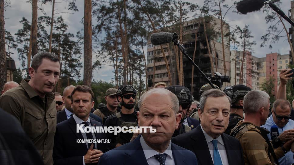 Президент Франции Эмманюэль Макрон, канцлер Германии Олаф Шольц и премьер-министр Италии Марио Драги приехали в Киев 16 июня на поезде. Поездка, о которой не было объявлено заранее из соображений безопасности, состоялась за день до того, как Европейская комиссия выпустит рекомендацию о статусе Украины как кандидата в члены ЕС.