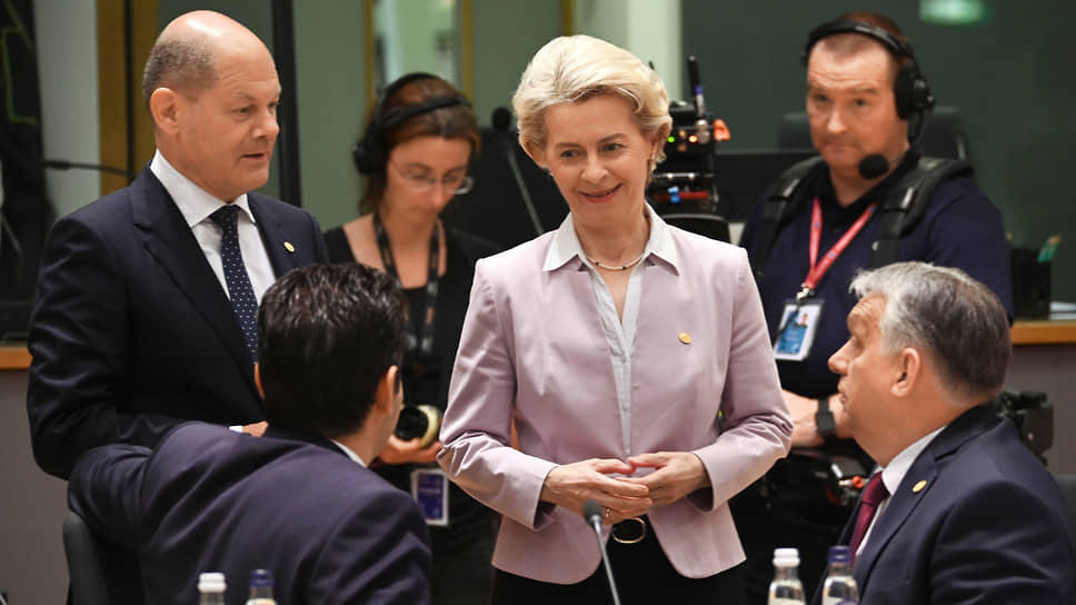 Канцлер ФРГ Олаф Шольц (слева), председатель Европейской комиссии Урсула фон дер Ляйен и премьер-министр Венгрии Виктор Орбан