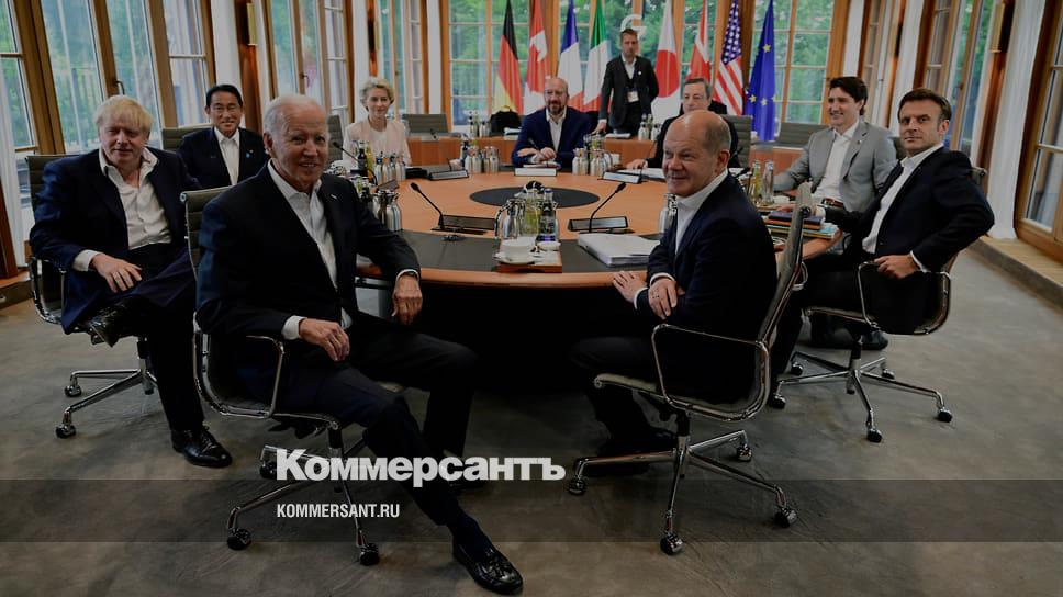 По итогам саммита «группа семи» также пообещала продолжать вводить санкции в против России «столько, сколько потребуется». G7 обвинила Москву в резком ухудшении энергетической безопасности и доступа к продовольствию во всем мире. «Мы будем поддерживать Украину столько, сколько нужно, оказывая необходимую финансовую, гуманитарную, военную и дипломатическую поддержку... Мы готовы вместе с заинтересованными странами договориться с Украиной об устойчивых обязательствах в области безопасности»,— говорится в выдержке из коммюнике (.pdf).