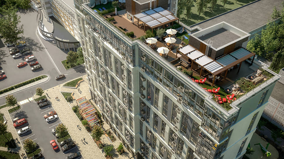 Она, указано в описании, «располагает пить кофе с соседями, работать в уютном коворкинге, заниматься йогой на настоящем газоне». Проект также предполагает чистовую отделку квартир.