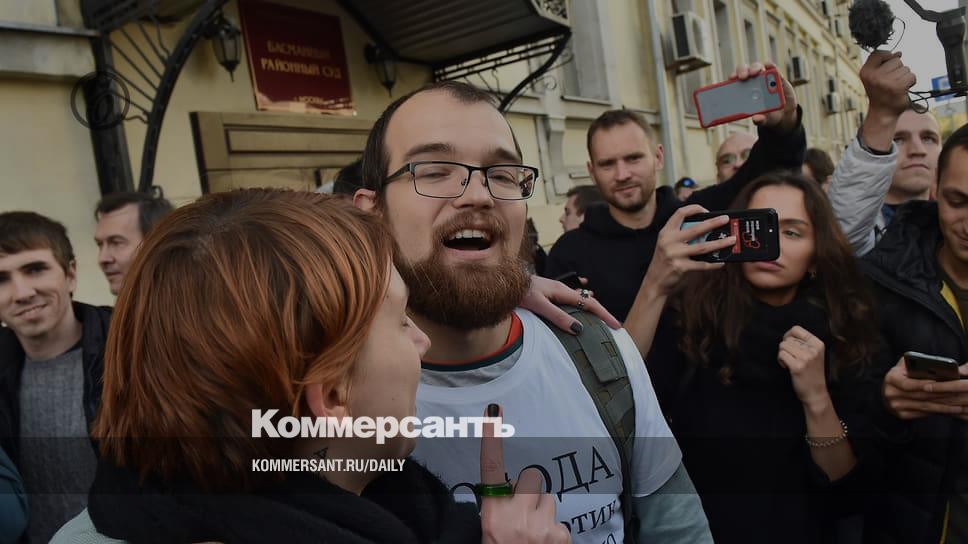 Алексей Миняйло (в центре), обвинявшийся в участии в массовых беспорядках в Москве в 2019 году, полагает, что есть и другие способы взаимодействия с представителями власти