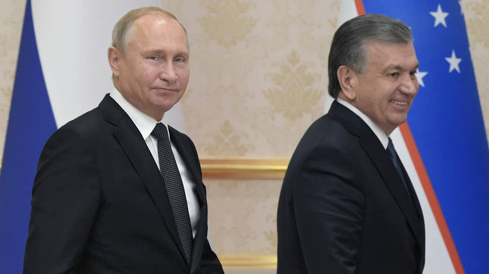 Президент России Владимир Путин (слева) и президент Узбекистана Шавкат Мирзиеев