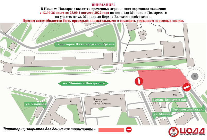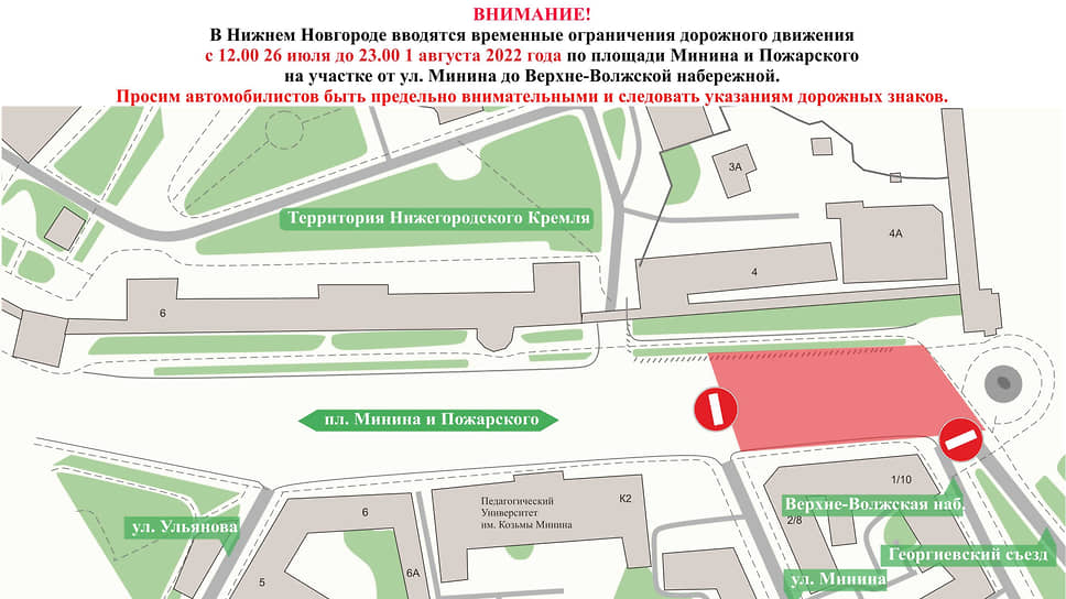 Движение на участке площади Минина приостановят с 26 июля по 1 августа