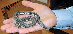 Из всех обитателей серпентария зимовать в стационаре остались только пяток гюрз, желтобрюхий полоз и маленький гадюшонок — только благодаря сонному состоянию собратьев он спал спокойно. В иной ситуации он стал бы добычей соседей — в первую очередь желтого полоза. Впрочем, обе змеи очень охотно шли на руки к сотрудникам серпентария и позировали перед фотоаппаратом.