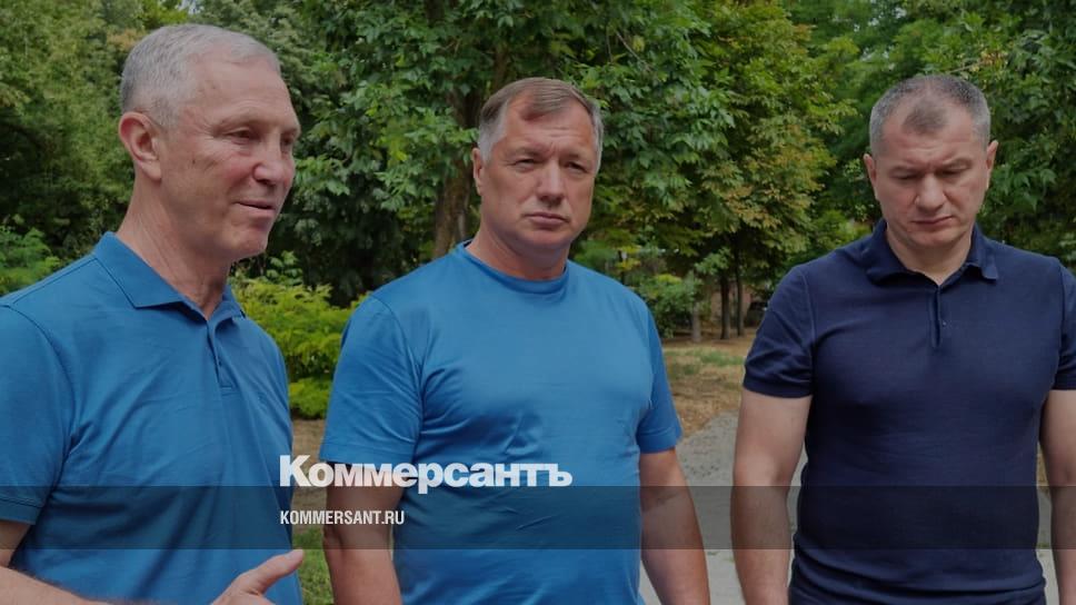 Глава пророссийской администрации Херсонской области Владимир Сальдо, заместитель председателя правительства РФ Марат Хуснуллин