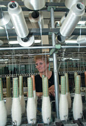 — Оренбургского пуха нам просто не хватит (всего в производстве используется 10-15% оригинального оренбургского пуха), если вязать платки только из него,— рассказывает директор Владимир Калинин.— К тому же платок получится золотой: оптовая цена оренбургского пуха — от 450 руб. за кило, волгоградского — 300 руб., горно-алтайского — 350.