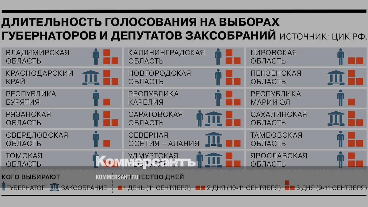 В ходе основных избирательных кампаний будет избрано 14 глав регионов. Еще в одном регионе, Республике Адыгея, главу изберут голосованием в парламенте.