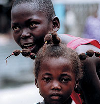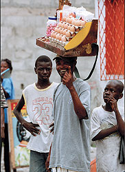 | Браззавильские лоточники умеют продемонстрировать свой товар лицом |