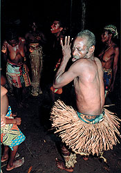 Рядом с пигмеями мы прожили неделю. Только через три дня они перестали относиться к нам с подозрением. До этого мужчины прятали от нас своих женщин и детей и не спали по ночам. Вождь даже заявил нашему проводнику, что если им суждено умереть, то они готовы — все вместе. Потом жители поверили нам так же искренне, как они нас поначалу боялись. Пигмеи показали нам, как они охотятся, добывают мед, рассказали о лекарственных свойствах растений. Из атрибутов цивилизации у них были только мачете и металлические котелки, которые они выменивают на дичь у банту из окрестных деревень. Наши подарки — спички, мыло, новые мачете — были приняты на ура.