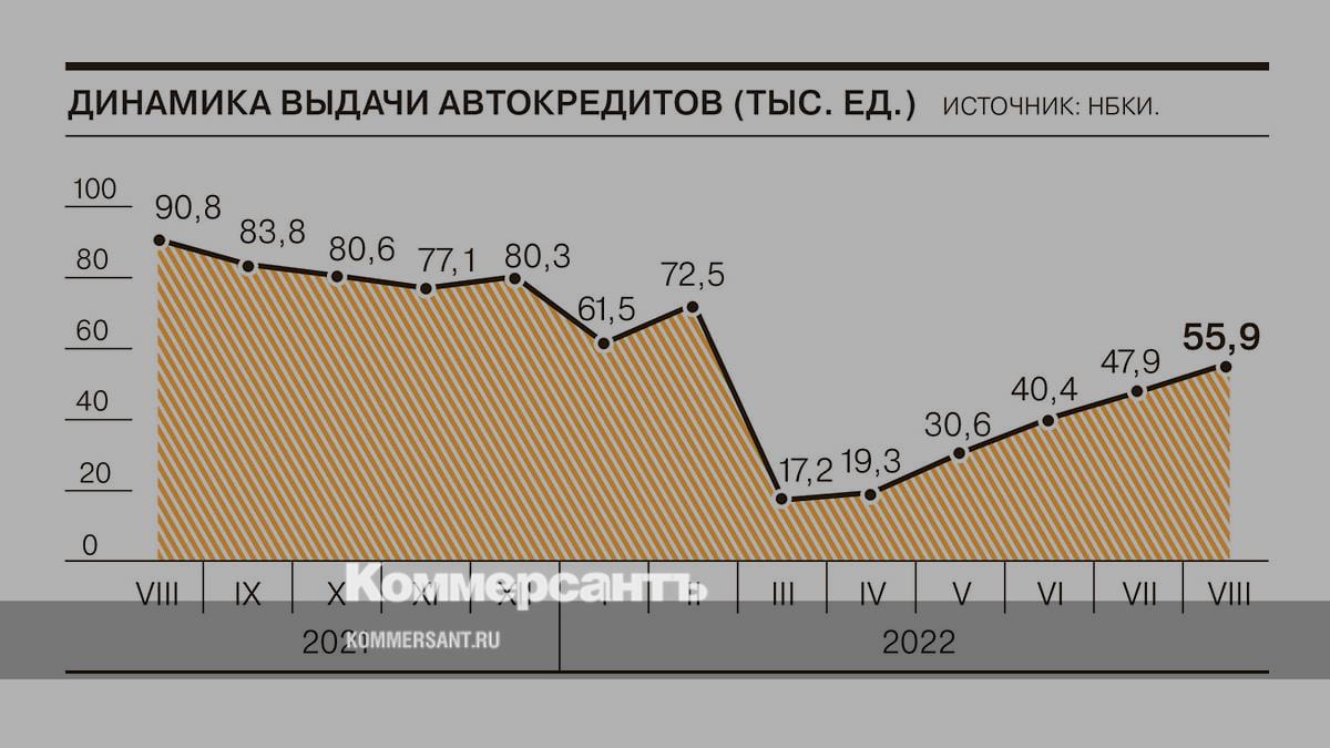 В августе в России было выдано 55,9 тыс. автокредитов, что на 16,8% больше, чем месяцем ранее. После падения в марте количество кредитов на новые и подержанные автомобили растет пятый месяц подряд, сообщает НБКИ.