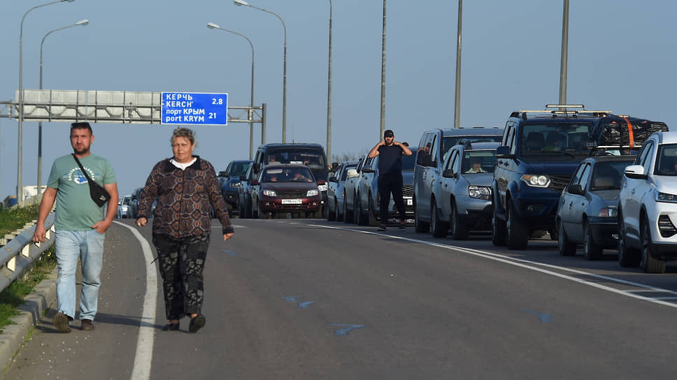 Вечером 8 октября людям приходилось по несколько часов ожидать своей очереди на выезд, говорит собеседник “Ъ FM” Константин: «Мы приехали на мост в числе первых, как только объявили, что по нему можно двигаться. С паромной переправы мы за час добрались до въезда на Крымский мост — дороги еще нигде не были перекрыты. Остановились за 500 м от контрольно-пропускного пункта и проезжали их пять часов. Это связано с реверсивным движением и тотальной проверкой машин.