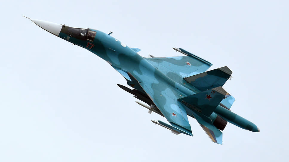 Су-34 — фронтовой сверхзвуковой истребитель-бомбардировщик. Представляет собой модификацию истребителя Су-27. Разработан в опытном конструкторском бюро Сухого (ныне — ПАО «Компания “Сухой”»). Первый полет совершил 13 апреля 1990 года, на вооружение военно-воздушных сил РФ принят 20 марта 2014 года. Серийно производится с 2006 года на Новосибирском авиационном заводе им. В. П. Чкалова (филиал компании «Сухой»). По данным на 2020 год, было произведено 136 самолетов Су-34.