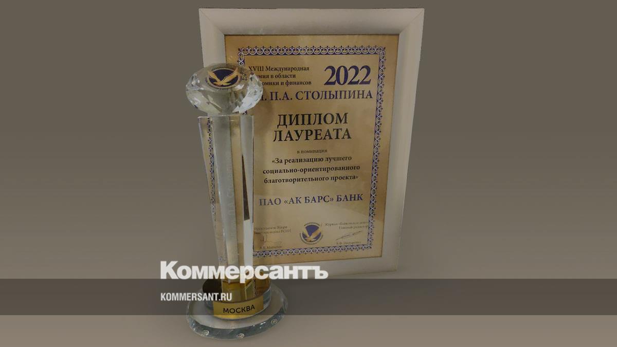 Проект «Подарок первокласснику от Ак Барс Банка» стал лауреатом премии в области экономики и финансов имени П.А.Столыпина
