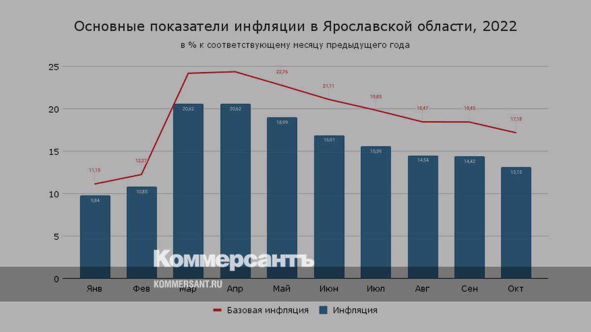 Годовая инфляция в Ярославской области продолжает снижаться и составила в октябре 13,15% после 14,42% месяцем ранее. На ее замедление преимущественное влияние оказали динамика цен на продовольственные и непродовольственные товары, сообщается в информационно-аналитическом комментарии регулятора.