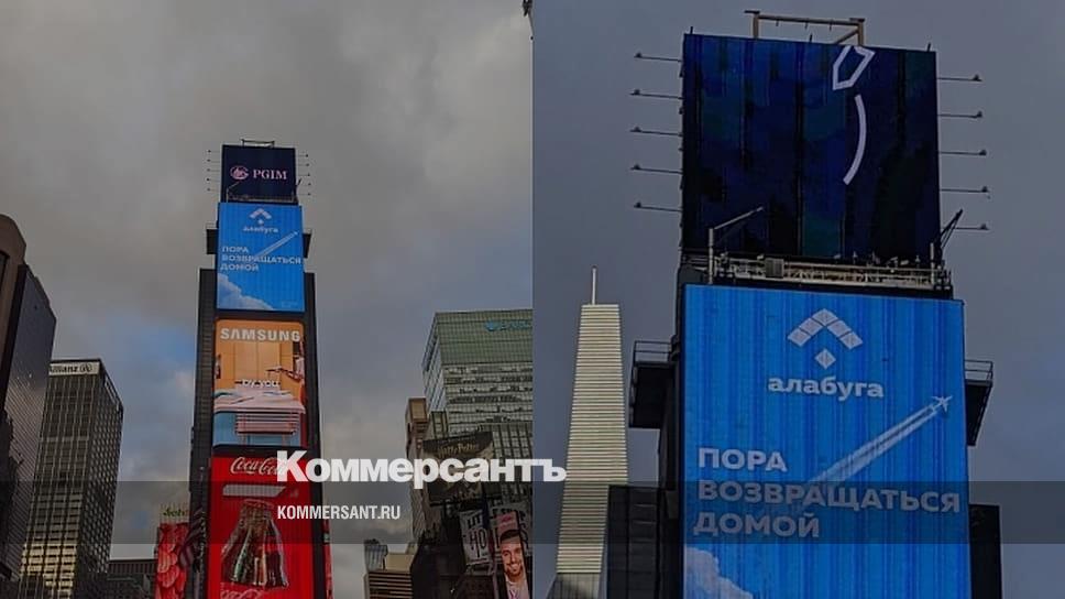 Крупнейшая в России особая экономическая зона (ОЭЗ) «Алабуга», расположенная в Татарстане, разместила свою рекламу на русском языке «Пора возвращаться домой» на Таймс-сквер в Нью-Йорке.