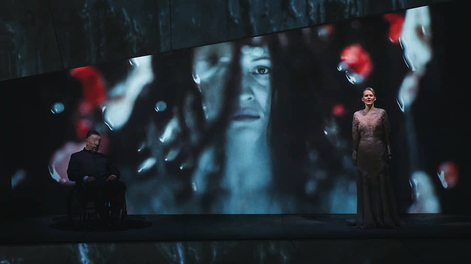 Музыка «Замка» постепенно проявлялась из «расширенной увертюры» словно сама собой. Примерно так же, как сквозь стену на видео проявлялось пульсирующее тело замка, его мягкие ткани, кровеносная и лимфатическая системы. Замок стал у Сафоновой живым существом, скованным не то нашими, не то собственными каменными представлениями о прекрасном. Как существо-персонаж, замок едва ли не более жив, чем Герцог и Юдит: оба внутренне пронизаны движением противоборства, притяжения-отталкивания, страха, надежды, слабости, алчности, но внешне почти неподвижны в сценическом проеме, больше похожем на одиночную камеру. Персонаж-замок почти до неразличимости слит с немыми бартоковскими персонажами — мертвыми женами: хотя они всегда где-то незримо присутствуют, нам, как и Юдит, приходится их дожидаться, причем в спектакле появляются они почти физически сокрушительно.