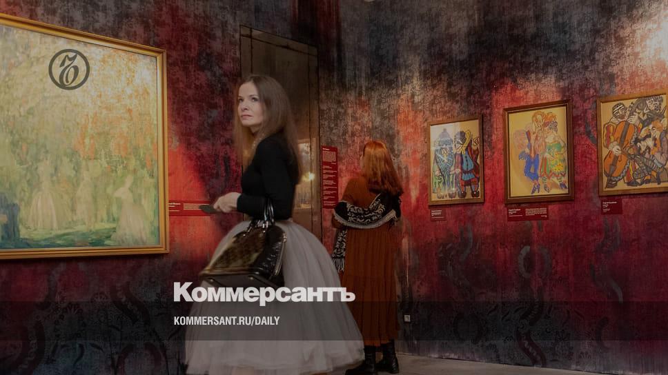 У выставки четыре раздела («Венеция в Петербурге Серебряного века», «Арлекины Серебряного века», «Езда в Остров любви: опыт жизнетворчества», «Маскарад. Время закатов»), названные «актами» — что логично. Основная линия связана именно с театром — театром «настоящим», как в случае мейерхольдовской постановки лермонтовского «Маскарада», театром любительским, собиравшим сиятельнейших персон артистического Петербурга 1900–1910-х, ну и театрализацией неподражаемого быта салонов вроде «Башни» Вячеслава Иванова. Отсюда, в частности, роскошная подборка театральных эскизов Бенуа, Судейкина, Сапунова.