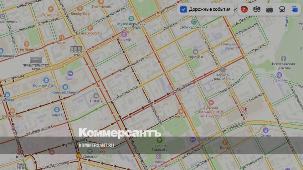 Сегодня вечером в Перми впервые с начала зимнего сезона 10-бальные пробки. Сейчас, по данным «Яндекс Карт», пробки в целом по городу оценивают в 7 баллов. Сильнее всего затруднено движение по центральным улицам.