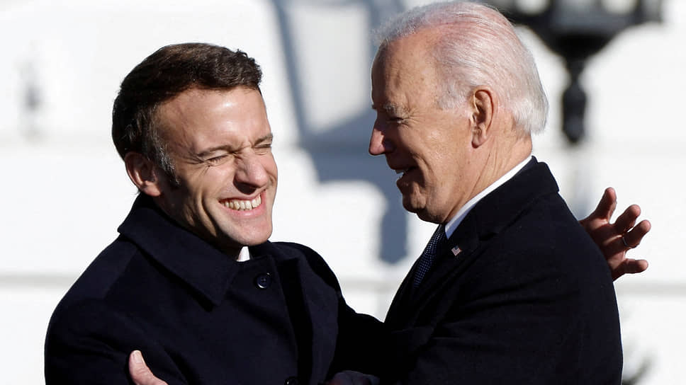 Президент Франции Эмманюэль Макрон (слева) и президент США Джо Байден