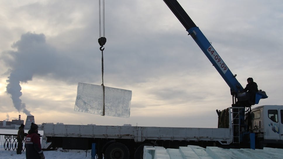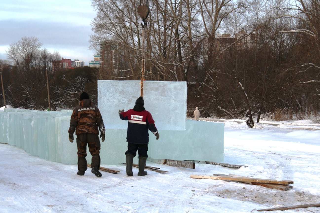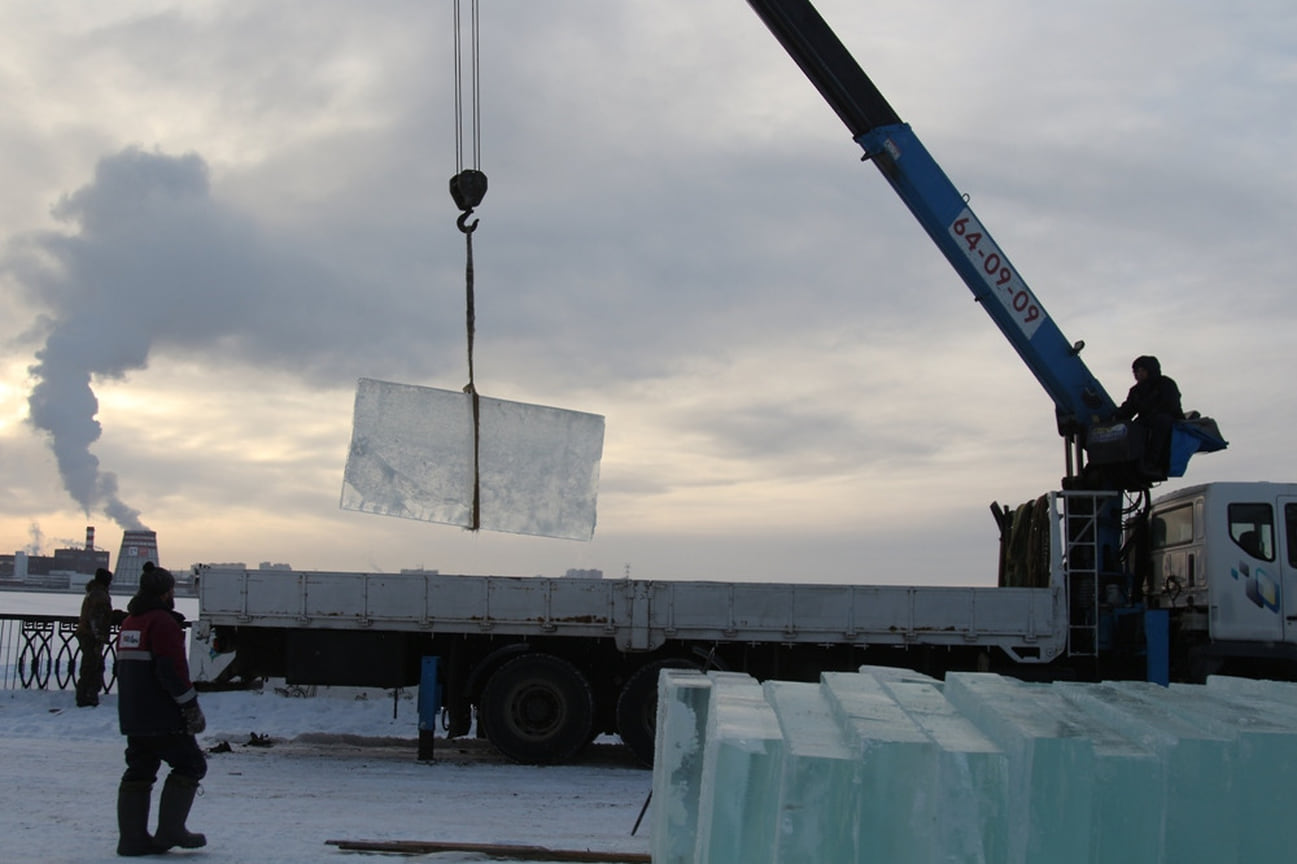 Как рассказал скульптор Анфим Ханыков, в настоящее время толщина льда на пруду составляет 25-26 см, в прошлом году 20-сантиметровой толщины удалось дождаться к середине декабря. Из-за этого сроки для монтажа были сжаты.