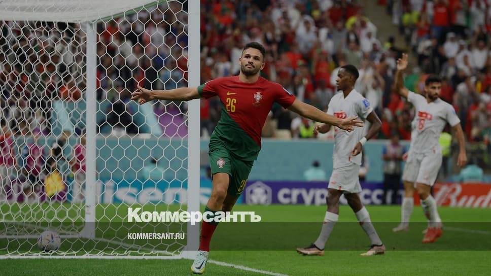 Последним четвертьфиналистом чемпионата мира по футболу, продолжающегося в Катаре, стала сборная Португалии. Оставив в запасе свою главную звезду Криштиану Роналду, она во многом благодаря хет-трику нападающего Гонсалу Рамуша добилась очень крупной победы над командой Швейцарии — 6:1 — и теперь встретится со сборной Марокко, которая ранее в серии пенальти одолела испанцев.