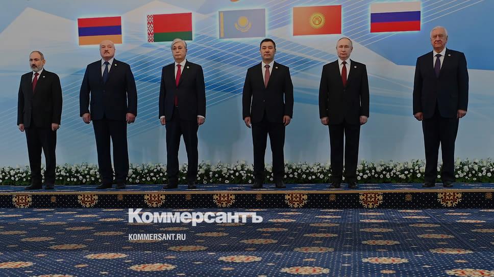 Слева направо: премьер-министр Армении Никол Пашинян, президент Белоруссии Александр Лукашенко, президент Казахстана Касым-Жомарт Токаев, президент Киргизии Садыр Жапаров, президент России Владимир Путин и председатель Коллегии Евразийской экономической комиссии Михаил Мясникович