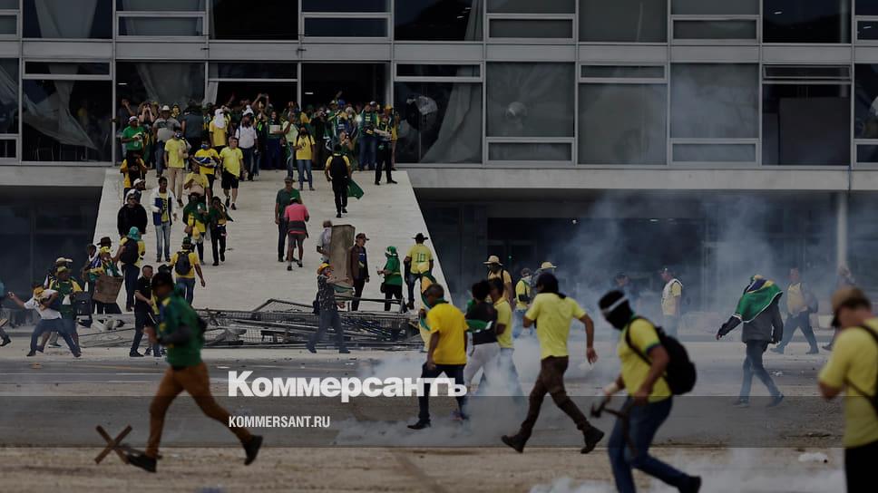 8 января сторонники экс-президента Бразилии Жаира Болсонару организовали протесты в столице. Из-за несогласия с итогами президентских выборов они штурмом взяли здания Верховного суда, Конгресса, резиденции президента и нескольких министерств. В результате протестов от власти отстранили губернатора столицы Бразилии. Полиция задержала около 200 человек. Кадры с места происшествия — в фотогалерее «Ъ».