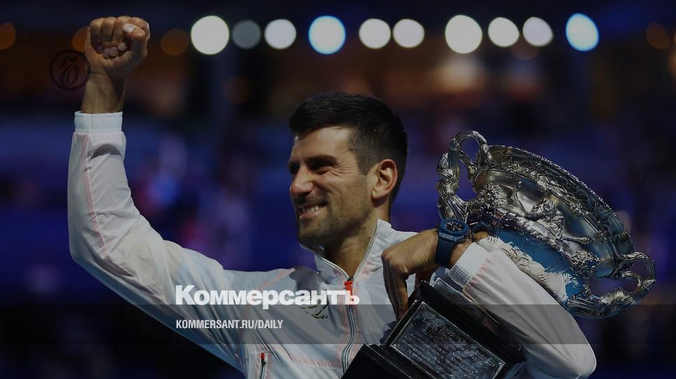 Триумфатором Открытого чемпионата Австралии в десятый раз стал Новак Джокович. После победы, одержанной в трех партиях над греком Стефаносом Циципасом, 35-летний серб имеет 22 титула, завоеванных на турнирах Большого шлема,— столько же, сколько бывший единоличный лидер по этому показателю Рафаэль Надаль. Кроме того, благодаря этому успеху Джокович вернулся на первое место в мировом рейтинге, обогнав там еще одного испанца Карлоса Алькараса.