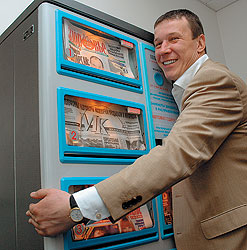 Олег Полозов, исполнительный директор "Газетных автоматов": Наши издательские проекты оказались нерентабельными, и тогда мы решили войти в рынок торговли газетами через автоматы. Сейчас у нас продается иногда до 300 единиц продукции через одну торговую точку (всего к такому способу распространения обратилось порядка 30 изданий). До этого у нас было около трех десятков киосков, но с ними была масса проблем: многие киоскеры игнорировали нашу продукцию, искусственно превращая ее в невостребованную. Плюс проблемы с установкой, разрешениями, даже с грабежами (например, один наш киоск на проспекте Мира грабили пять раз), в результате один киоск обходился в $8-10 тыс. Автомат — на порядок дешевле.