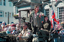 Одетые в духе 40-х годов школьники несли в руках картонные чемоданы, те самые, с которыми их бабушки в 1940 году уплывали с Гернси. Взрослые переодевались то чайками, то пиратами, то христианскими святыми, из гаражей выкатили буквально все автотранспортные средства тех времен. Но главное зрелище — военная техника: парад возглавляли виллисы, джипы, мотоциклы, грузовики армии союзников, за рулем были все те же немногочисленные ветераны в форме да их дети с внуками в той же военной форме.