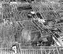 | Когда первые семьи приехали жить в Левиттаун в октябре 1947 года, они с трудом могли найти свой дом среди бесконечных картофельных полей, застроенных одинаковыми "Кейп-Кодами" |