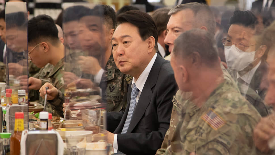 Южнокорейский президент Юн Сок Ёль на обеде с американскими военными, апрель 2022 года
