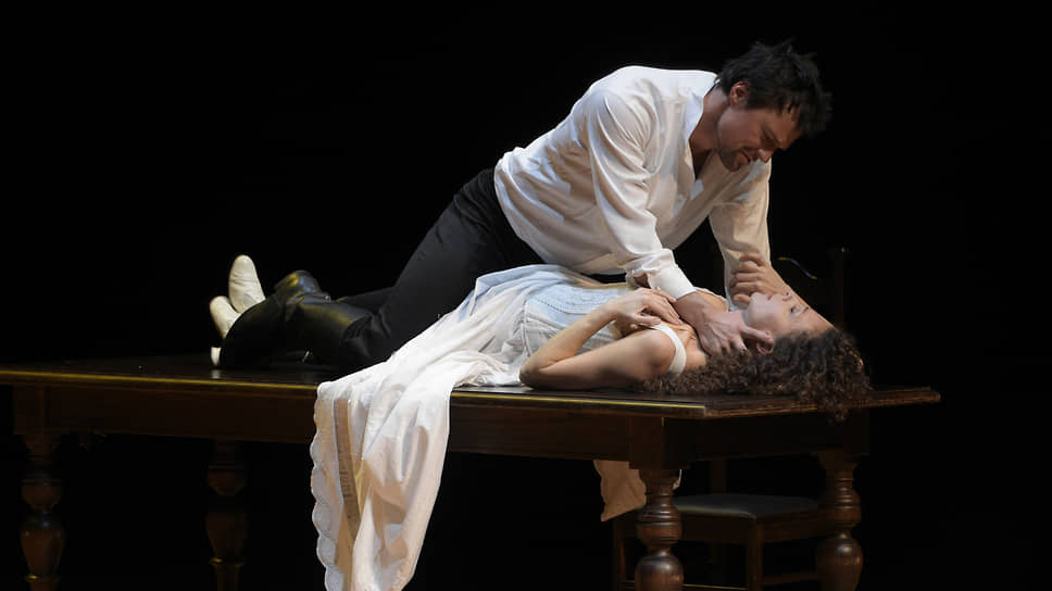 Артисты Ксения Раппопорт (справа) и Данила Козловский (слева) во время спектакля.