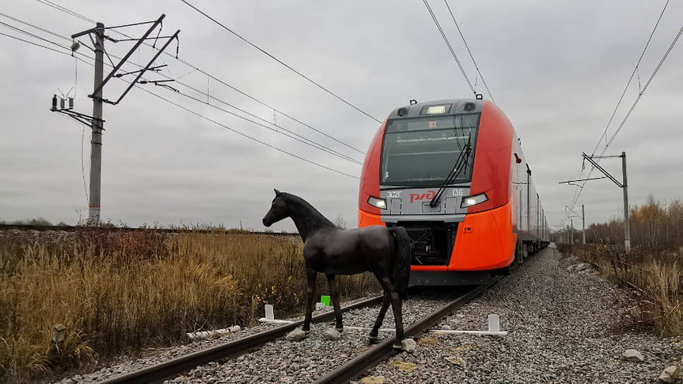 Испытания проходили штатно. «Ласточка», чья максимальная скорость 160 км/ч, до максимума не разгонялась. «Дима, какая скорость там?» — спрашивали инженеры машиниста Теньсина. «Шестьдесят!» — отвечал он, стоя в дверях кабины. Поезд мягко сбрасывал скорость и останавливался перед макетом лошади.
