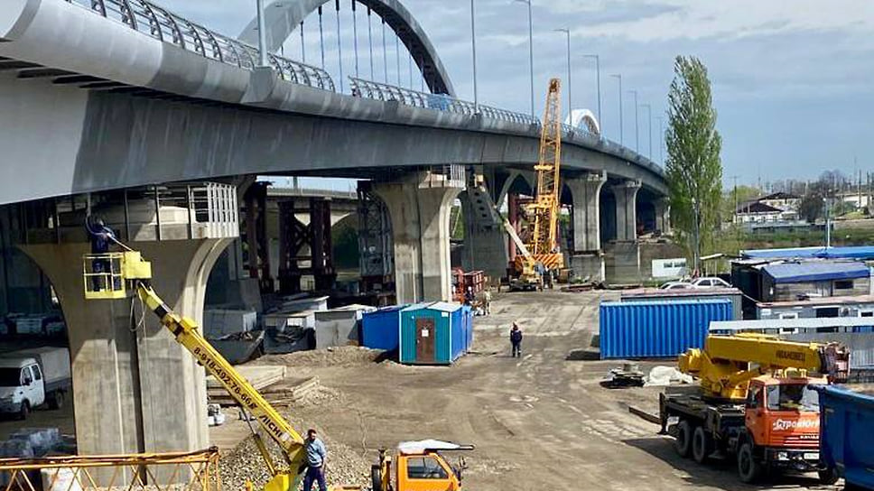 «Рабочие устанавливают элементы электроосвещения мостового перехода и цоколи под барьерное ограждение, укладывают покрытие тротуаров, прокладывают сети. Приступили к нанесению защитно-сцепляющего слоя проезжей части. На 90% выполнено устройство дорожной одежды первого этапа сооружения подходов»,— говорится в сообщении.