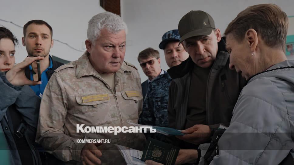 Евгений Куйвашев (второй справа) во время общения с жителями поселка Сосьва 27 апреля