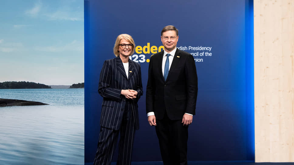 Валдис Домбровскис и Элизабет Свантессон, министр финансов Швеции