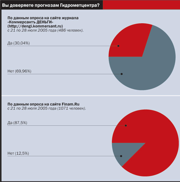 Про дополнительные заработки разговор отдельный. Гидрометцентру, имеющему статус государственного учреждения, разрешено заниматься договорной деятельностью по специализированному обслуживанию потребителей. Прогнозы общего пользования финансируются из госбюджета. Специализированные гидрометеорологические прогнозы для конкретного потребителя делают по договорам и за деньги. Среди структур, которым нужна информация,— энергетики, СМИ, коммунальные службы, аграрии. Константин Григорьевич вспоминает: