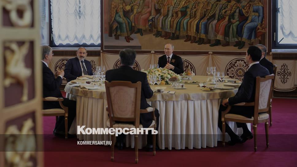 Неформальный завтрак президента России Владимира Путина с главами стран СНГ в Грановитой палате Кремля в рамках празднования. Президент России Владимир Путин (в центре) во время мероприятия.