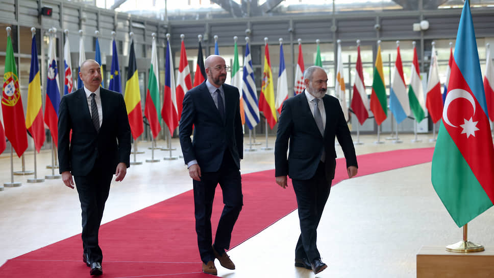 Ильхам Алиев, Шарль Мишель, Никола Пашинян (справа).