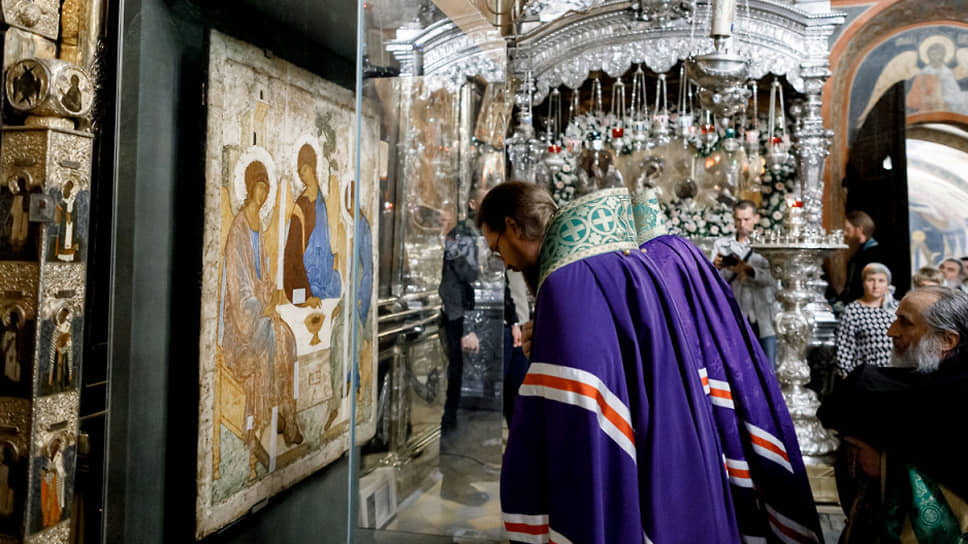 О передаче иконы РПЦ стало известно 15 мая. Как уточнили в РПЦ, «Троицу» выставят для общенародного поклонения в кафедральном соборном храме Христа Спасителя в течение одного года по благословению патриарха Кирилла. После она будет выставлена в Троицком соборе Свято-Троицкой Сергиевой лавры.